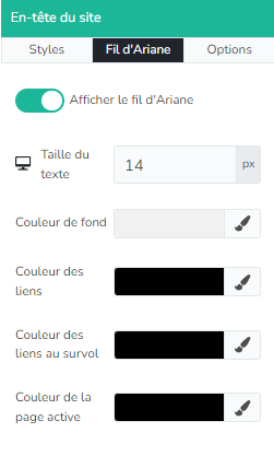 Concernant l'en tête du site 3 onglets sont à renseigner : Le style, le fil d'ariane et les options.